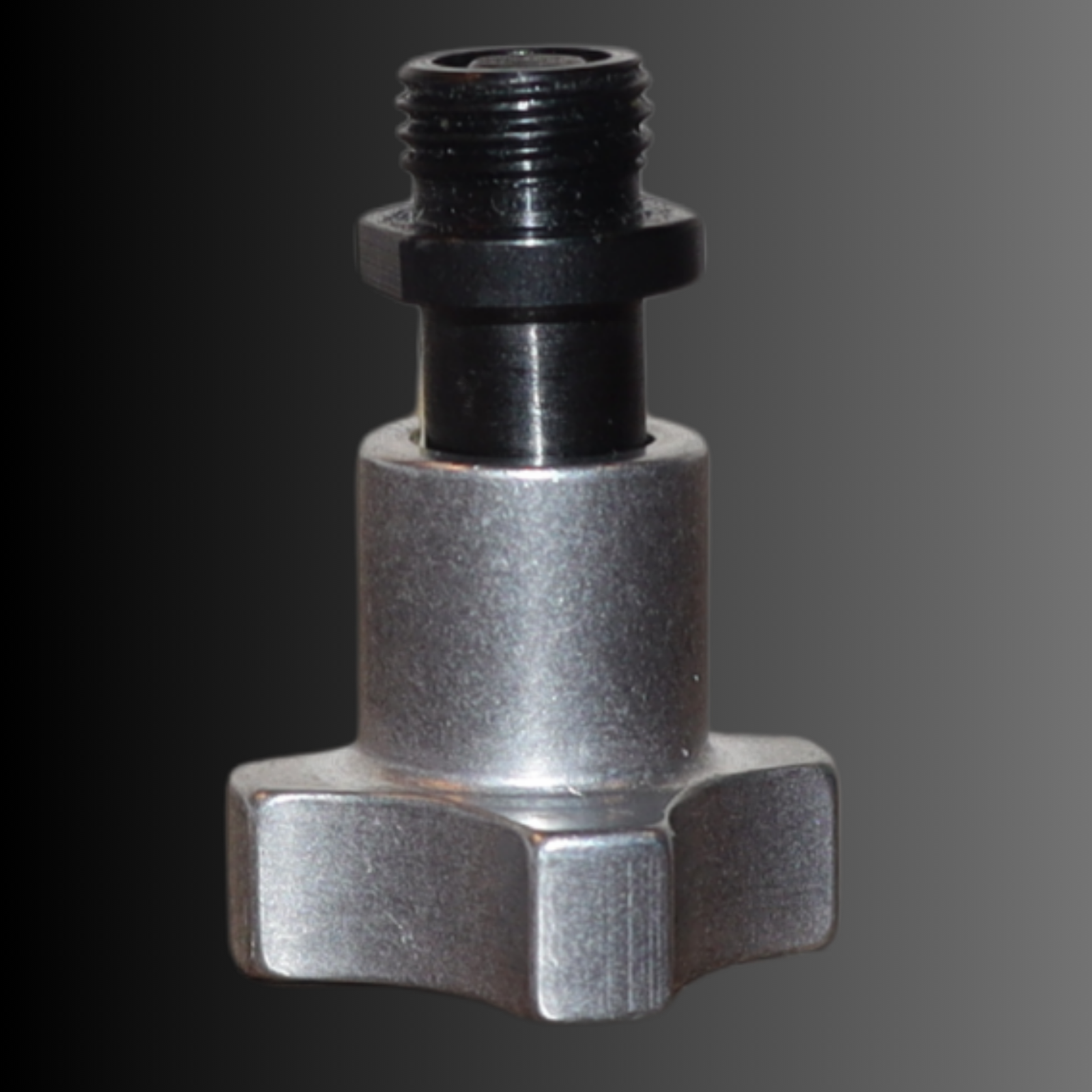 Each fastener consists of a spring-loaded screw knob, shaft, and collet. Installation is quick and simple—just insert the collet into a threaded hole in the fixture and tighten. The collet includes wrench flats for easy installation.